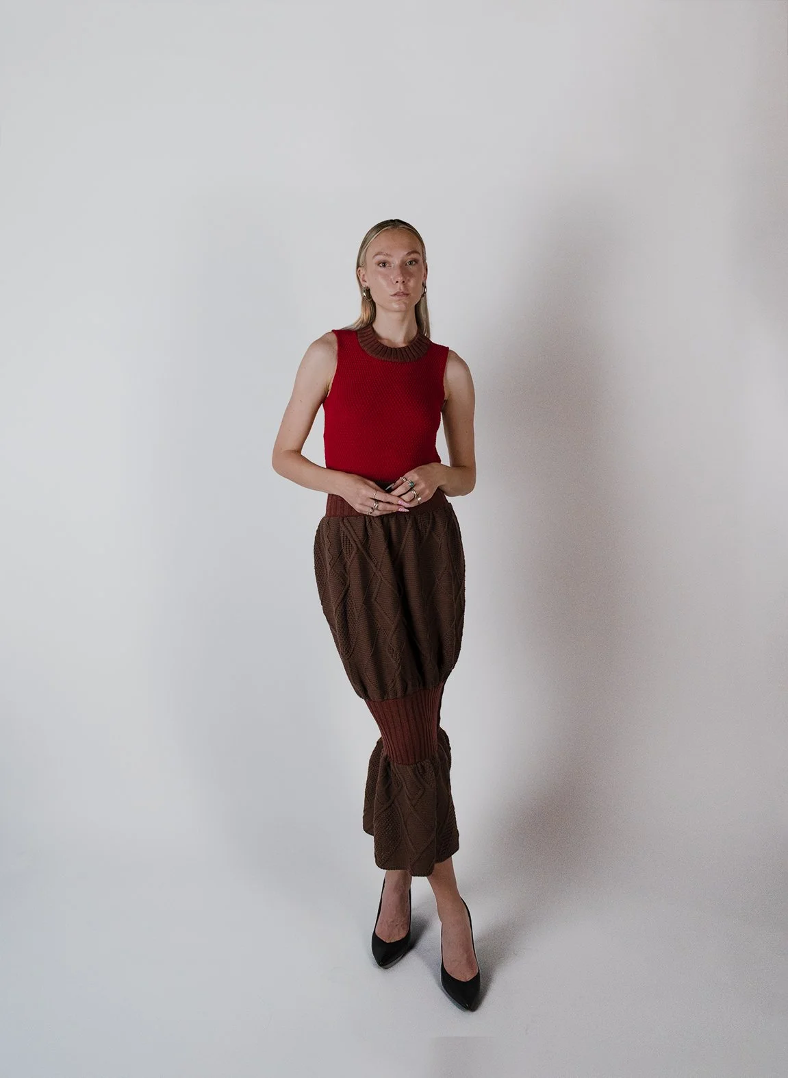 The Ballon skirt consist of two rectangular peices being knit together by rib at the waist and the knee.